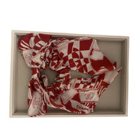 This Chanel silk scrunchie set combines bold design with luxurious material, featuring iconic logo patterns in red and white, perfect for elegant hair styling. • Made of premium silk material • Features Chanel signature logos & patterns • Stretchable for comfortable fit • Includes two scrunchies in set • Durable and stylish hair accessory Size: Womens OS Condition: Pre-Owned Like New