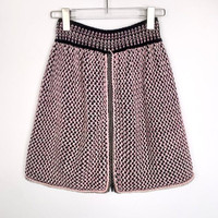 Chanel Style Knit Pink & Black A-Line Skirt With Front Pockets And Chain Trim De
