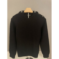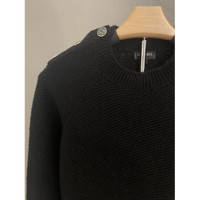 Chanel Womens Black Wool Knit Sweater With Silver Button Shoulder Detail