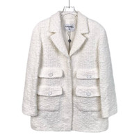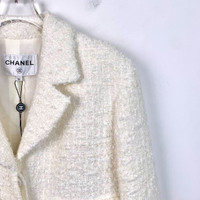 Chanel Womens Ivory Tweed Blazer Jacket Size 34