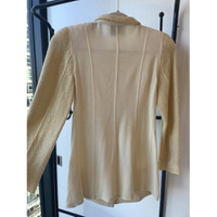 This classic Chanel blazer combines a sophisticated weave with textured detailing, offering a refined look for professional settings. The ivory color complements a variety of ensembles, while the button-up design provides a tailored fit. • Textured button-up design • Wool and cotton blend • Two front pockets • Long sleeves with button detail • Collared neckline No visible condition flaws. Size: Womens 38 Condition: Pre-Owned Like New
