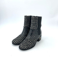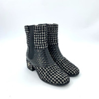 Chanel Womens Tweed & Leather Boots Size 35.5 Made In Italy
