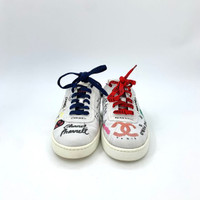 Chanel X Pharrell Graffiti Lace-Up Sneakers Size 36 White/Multicolor Leather Cas