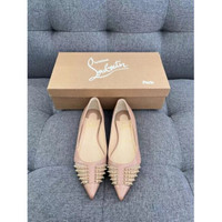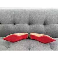 Christian Louboutin Pink Rivet Pointed Toe Flats With Iconic Red Sole Size 35