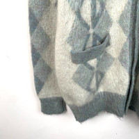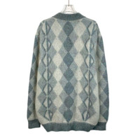 Christian Dior Argyle Mohair Wool Cardigan Sweater M Gray & Light Blue Made In I