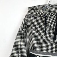 S Grade H12339 Christian Dior Black Houndstooth Print Drawstring Hooded Jacket, Size XS, 98% new. Original price: $2,750. Indulge in luxury with this stunning piece—act fast and make it yours today!