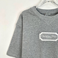This Christian Dior Couture T-shirt offers a luxurious and sophisticated touch to casual attire. Crafted from premium cotton, it provides a soft and comfortable wear. The subtle gray hue pairs effortlessly with a variety of styles, making it a versatile addition to a wardrobe. • 100% Cotton • Made In Italy • Crew Neck Design • Short Sleeves • Embroidered Logo H13804 Size: Womens L Condition: Pre-Owned Like New