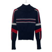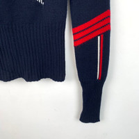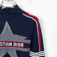 Grade A H12685 Christian Dior Deep Blue Wool Knit Sweater with Striped Jacquard Logo and Collared Design, Size 36 (XS), 98% new. Original price: $2,020. Elevate your wardrobe with this elegant and luxurious piece—shop now and make it yours!