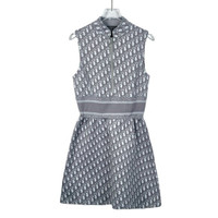 S Grade H10879 Christian Dior Gray Monogram Print Half-Zip A-Line Sleeveless Dress, Size 36 (XS), 98% new. Add timeless elegance to your wardrobe—shop now and make this iconic piece yours!
