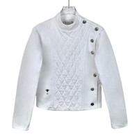 Grade A Christian Dior H11449 White Cotton Quilted Jacket with Logo and Bee Embroidery, size 34 (XXS), 98% new, a refined and elegant piece showcasing timeless craftsmanship and iconic detailing.