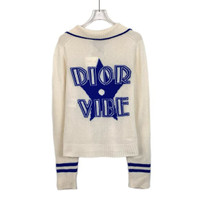 Christian Dior Womens Cashmere Sweater With Blue Stripes & Dior Vibe Logo