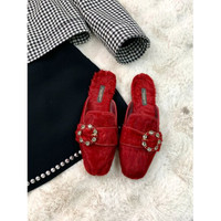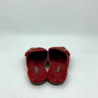 Dolce & Gabbana Red Fur Mule Slides With Jeweled Buckle