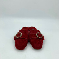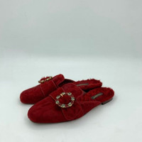 Crafted with luxurious red fur, these Dolce & Gabbana mule slides showcase an elegant jeweled buckle detail. Comfortable and stylish for elevated wear. • Genuine fur exterior • Sparkling jeweled buckle embellishment • Made in Italy • Comfortable slip-on design • Soft, plush fur-lined insole 002599 Size: Womens 36 Condition: Pre-Owned Good