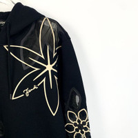 Fendi Black Floral Print Cotton Hooded Drawstring Long Sleeve Hoodie S