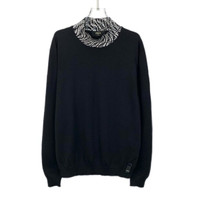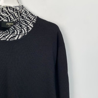 Grade A H12633 Fendi Black Wool Long-Sleeve Knit Sweater with Logo Jacquard Collar, Size 52 (L), 95% new with slightly faded care label.Add this elegant and versatile piece to your wardrobe—shop now!