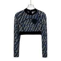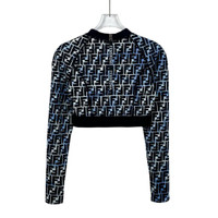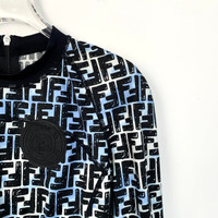 S Grade H12486 Fendi Colorblock Monogram Print Cropped Long-Sleeve Crewneck T-Shirt, Size 40 (M), 98% new. Add a bold and stylish statement piece to your wardrobe—shop now and make it yours!