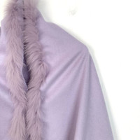 Fendi Lavender Faux Fur Trim Poncho Cape Wrap Shawl