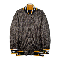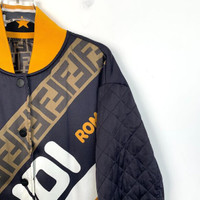 Fendi Reversible Quilted Jacket With Logo Print Mens Size L Black/Gold
