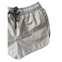 Fendi Womens Beige FF Logo Silk Drawstring Shorts Size S