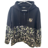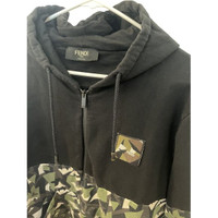 Fendi XL Camouflage Panel Hoodie Sweater 100% Cotton Black & Green