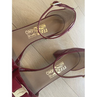 Salvatore Ferragamo Red Patent Leather Heeled Sandals Womens Size 6.5 With Bow &