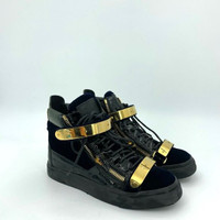 Giuseppe Zanotti Womens Black & Gold Three-Zip High Top Sneakers Size 36.5 Made