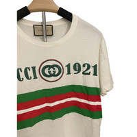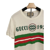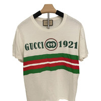 Gucci 1921 Logo White T-Shirt With Green & Red Stripes Made In Italy Short Sleev