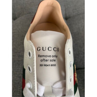 Gucci Ace Embroidered White Sneakers With Green & Red Stripe Leather Upper Water
