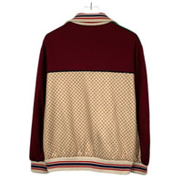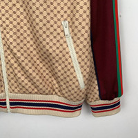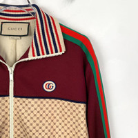 Gucci Beige & Burgundy GG Monogram Track Jacket With Striped Collar & Zip Closur