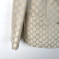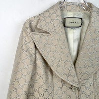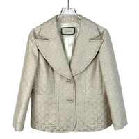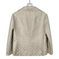 S-Grade Gucci H11314 Beige Double-G Silver Lurex Wool Blazer, size 40 (M), 98% new, originally priced at approximately $3,287 USD, a luxurious and elegant statement piece perfect for refined styling.