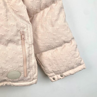 This Gucci puffer jacket offers warmth and style with its iconic monogram design. The detachable hood provides versatility, while the beige color adds a touch of elegance. With practical front pockets and a sturdy zipper closure, this jacket is designed for functionality and sophistication in cooler weather. • Detachable hood with drawstrings • Front zipper and snap button closure • Two front flap pockets • All-over monogram pattern • Elasticized cuffs with snap closures Measurements: Size 40 (165/88Y) H12707