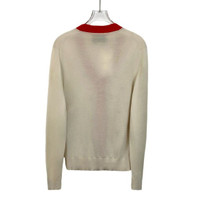 This Gucci cardigan features a charming pattern of embroidered insects, adding a unique touch to its sophisticated design. Crafted in Italy, it's made from 100% wool, offering warmth and comfort. The red trim contrasts beautifully with the beige fabric, creating a striking yet elegant look. • Button closure • V-neck design • Made in Italy • Lightweight and breathable • Unique insect embroidery H13577 Size: Womens S Condition: Pre-Owned Like New