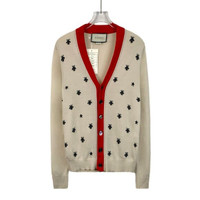 Gucci Beige Wool Cardigan With Red Trim & Insect Embroidery
