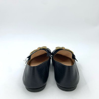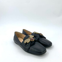 Gucci Black Leather Bee Flats With Rhinestone Detail Size 36 Made In Italy Women