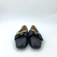 Elegant and sophisticated, these Gucci flats feature luxurious black leather and a standout rhinestone bee embellishment. Perfectly suited for tasteful, refined styling. • Black leather upper with bow design • Rhinestone-encrusted bee embellishments • Rubber soles for added durability • Crafted in Italy with expert craftsmanship x19705