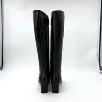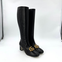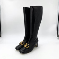 Gucci Black Leather Double G Gold Buckle Thick Heel Knee-High Boots Size 39.5 Wi