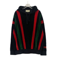 Gucci Black Velour Hoodie With Red & Green Stripes