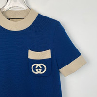 Grade A H12683 Gucci Blue Wool Short-Sleeve Dress with Double-G Pattern and Crewneck Design, Size XS, 98% new. Original price: $1,530. Add timeless elegance to your wardrobe—shop now and make this luxurious piece yours!