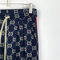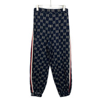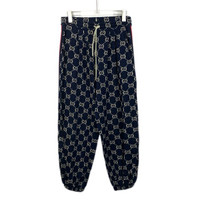 S Grade H12610 Gucci Deep Blue Cotton Drawstring Casual Pants with Monogram Print and Side Stripes, Size S, 98% new. Original price: $1,360+. Add a touch of luxury and comfort to your everyday style—shop now and make it yours!