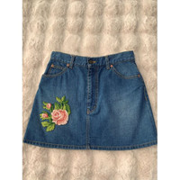 This Gucci denim skirt features a delicate floral embroidery design, combining luxury and casual wear. Crafted in Italy, it ensures quality and timeless style. • Features floral embroidery detail • Made from durable denim material • Front and back pockets for added utility • Button and zipper closure • Designed for a flattering fit X10829