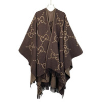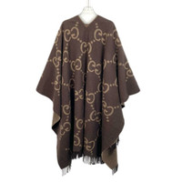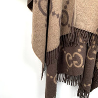 Gucci GG Logo Wool Cashmere Poncho Shawl Wrap Cape With Fringe Brown & Beige