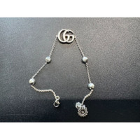 From Gucci, the GG Marmont fashion jewelry pieces blend crystals, pearl accents and Double G details as a charm or along the metal chain across a full collection of pieces. This delicate bracelet is presented in sterling silver and enriched by a Double G and mother-of-pearl details. 925 sterling silver Double G charm Mother of pearl details Clasp closure with flower Made in Italy Size: Womens OS Condition: Pre-Owned Like New