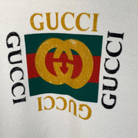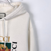 B-Grade Gucci H10925 White Cotton Long-Sleeve Hoodie with Logo Print, size XL, 95% new with localized stains, originally priced at approximately $1,133 USD, a stylish casual piece with a touch of luxury.