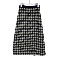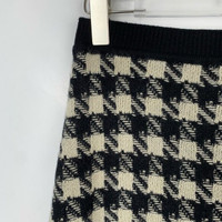 Gucci Houndstooth Knit A-Line Midi Skirt Made In Italy Black & Cream Cashmere Bl