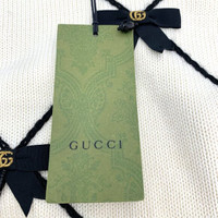 Gucci Ivory Wool Sweater With Black Bow Details & GG Accents