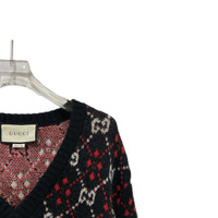 001035 Gucci Multicolor Monogram Print Alpaca Wool Knit Sweater, Size M, 98% new. A cozy and stylish addition to your wardrobe—don’t miss out, shop now!