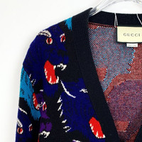 Gucci Multicolor Tiger Pattern Wool Cardigan Made In Italy