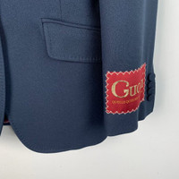 Gucci Navy Blue Logo Embroidered Collar Blazer