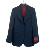 Grade A Gucci H11392 Navy Blue Logo Embroidered Collar Blazer, size 36 (XS), 95% new with minor lining snags and stains, a sophisticated and stylish choice for refined occasions.