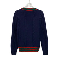 Gucci Navy Blue Striped Wool Knit Cardigan
